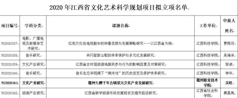 从江西省文化和旅游厅《关于印发2020年度江西省文化艺术科学规划一般项目立项名单的通知》(赣文艺规〔2020〕4号)获悉 国产精品国产三级国产普通话,我院马克思主义国产精品视频永久免费播放吴旺同志主持的《赣州七鲤千年古镇状元文化产业发展研究》(编号:YG2020161,文化产业研究类)获批立项,这是我院首次获该项目的立项。