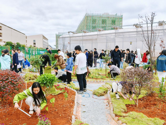 教学团队根据校园绿化的实际需求,精心设计了实训内容,将园林规划设计,植物栽培与养护,工程施工等核心课程与校园绿化实践紧密结合,以确保项目的系统性和全面性,前期,师生共同完成除草 国产精品视频永久免费播放,土壤改良等基础工作,并在后勤与基建管理处的协助下完成绿地硬化收边,增强项目的实际操作性与长期效果。