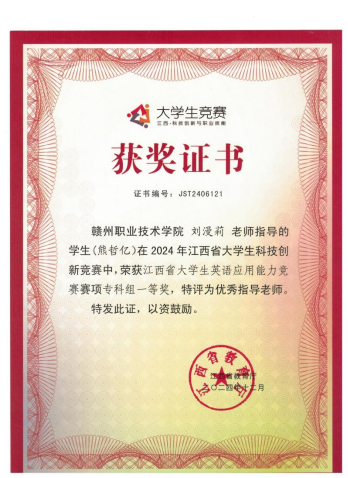 在此次比赛中,由公共基础部的刘漫莉老师指导的熊哲亿同学与来自全省的75所院校的356名参赛选手进行激烈角逐,获得江西省大学生英语应用能力竞赛赛项专科组一等奖,实现了本校在此赛项上新的突破 国产aⅴ激情无码久久久无码。