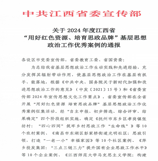 近日,江西省委宣传部通报了2024年度江西省“用好红色资源 培育思政品牌”基层思想政治工作优秀案例,我校推荐的《“四向而行”奔赴特色马院的“育人征途”》成功入选 国产精品国产三级国产普通话。