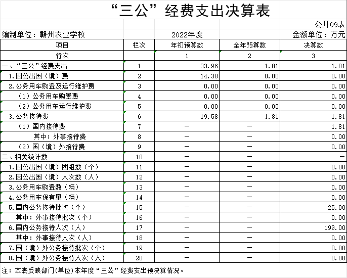 9、“三公”经费支出:指用财政拨款和其他资金安排的因公出国(境)费、公务用车购置及运行维护费和公务接待费。其中,因公出国(境)费反映单位公务出国(境)的国际旅费、国外城市间交通费、住宿费、伙食费、培训费、公杂费等支出;公务用车购置及运行维护费反映单位公务用车车辆购置支出(含车辆购置税、牌照费),按规定保留的公务用车燃料费、维修费、过桥过路费、保险费、安全奖励费用等支出;公务接待费反映单位按规定开支的各类公务接待(含外宾接待)支出。