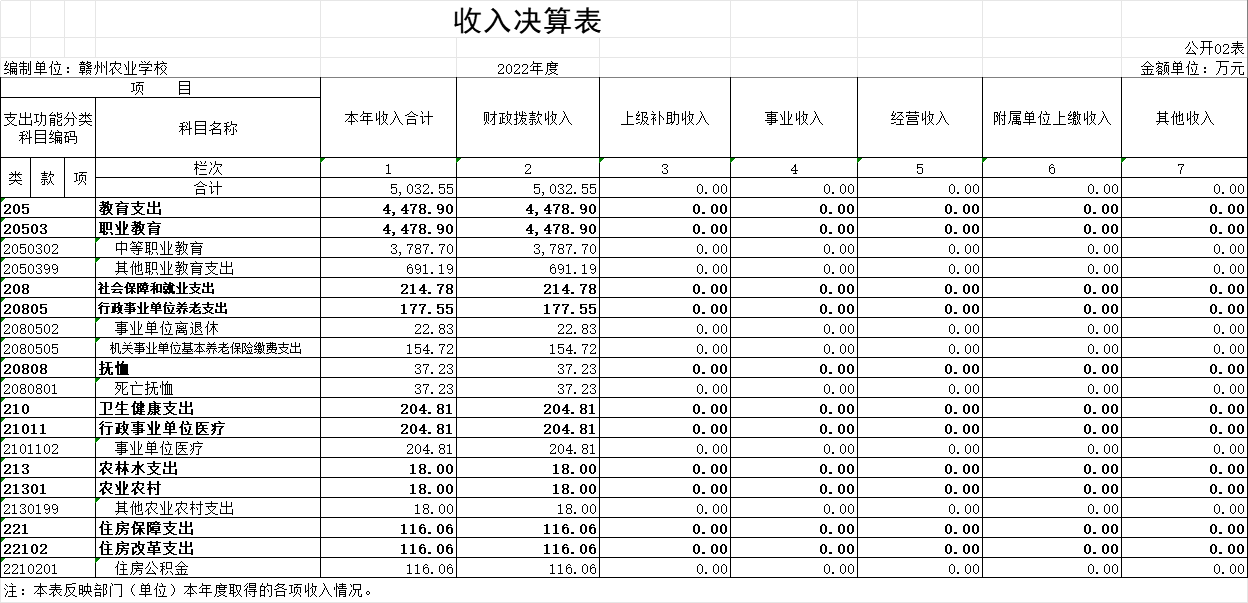 二、收入决算表