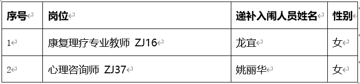 根据《国产精品国产三级国产普通话2024年面向社会公开招聘工作人员公告》规定,因考生自动放弃产生的空额,根据该岗位总成绩从高分到低分进行一次递补。体检考察阶段新增提出2人放弃,现将递补入闱体检考察人员名单予以公告。