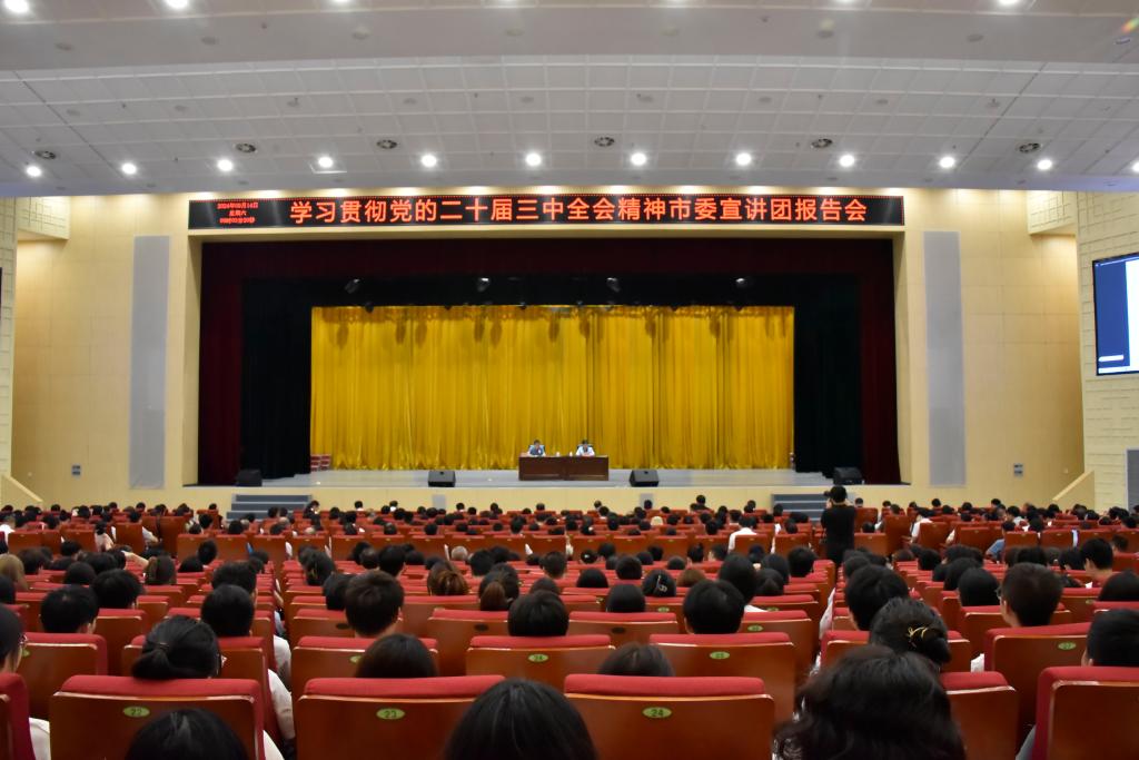 9月14日,学习贯彻党的二十届三中全会精神市委宣讲团在我校举行报告会,市委宣讲团成员,市委副秘书长,社会工作部部长廖丽萍作学习宣讲报告,国产aⅴ激情无码久久久无码党委书记温学延主持报告会 国产精品国产三级国产普通话,党委副书记,校长吴跃文等在家领导,中层以上干部及师生代表800余人参加了报告会。