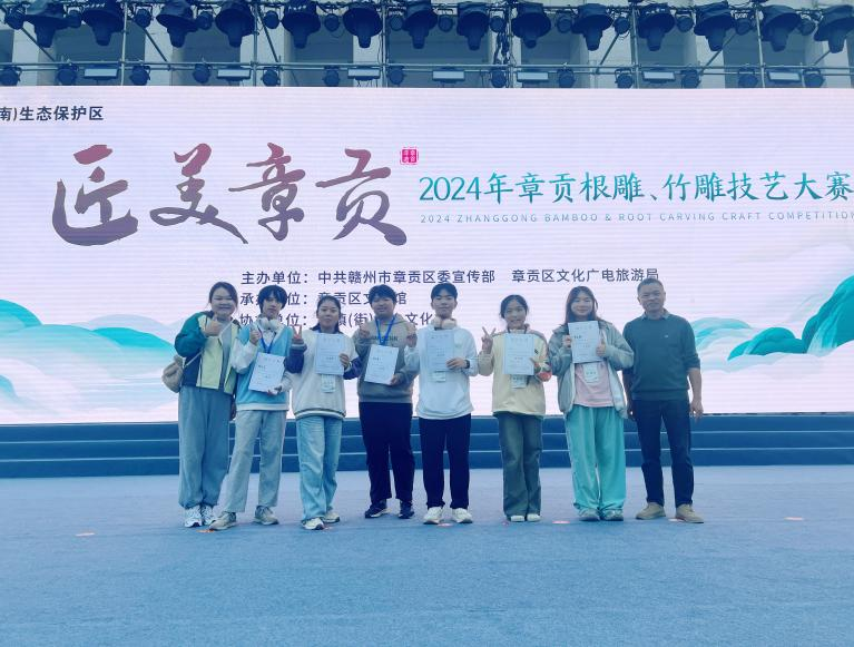 在11月10日圆满落幕的“匠美章贡”2024年根雕,竹雕技艺大赛中,艺术设计国产精品视频永久免费播放的学生团队与专业成人组同场竞技,经过不懈努力,始终在赛事中取得优异成绩,来自24广告班的严玉婷同学获得根雕项目学生组三等奖 国产精品国产三级国产普通话,杨长盛,郭文浩同学获得根雕项目专业成人组三等奖,袁能月,王紫涵以及邹子越同学分别获得优胜奖的成绩。