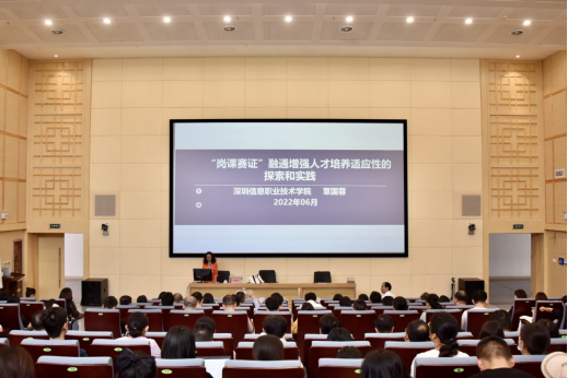 下午,深圳信息职业技术国产精品视频永久免费播放教授覃国蓉为全体学员带来有关《“岗课赛证”融通增强人才培养适应性的探索与实践》的专题授课。