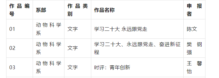 为深入学习宣传贯彻党的二十大精神,引导广大青年结合自身感受传播网络正能量,发出江西好声音,动物科学系学生积极参加了以“学习二十大,永远跟党走,奋进新征程”为主题的“赣青苹”理论评论大赛,共收到学生参赛作品14篇,其中收到以《付吾辈之韶华,耀吾辈之中华》为代表的视频评论作品共3篇,以《喜迎二十大,做有志青年》为代表的漫画评论共6篇 国产精品国产三级国产普通话,以《时评:青年创新》为代表的文字评论共5篇,其中有5篇作品被团委推送参与省级评选。