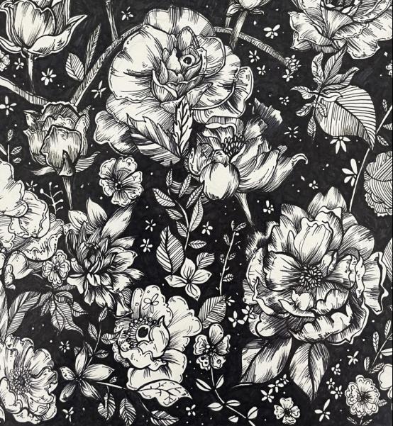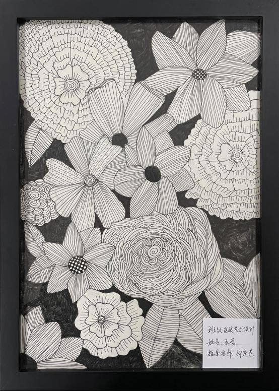 简单的花卉,现已不再是照本宣科,要尝试加入自己的感觉和元素,王怡宁同学灵活运用点,线,面多种形式的表现方式,使画面黑白灰变化丰富,虚实层次错落有致,疏密空白安排得体,在形象上进行夸张,取舍,变形,并竭力使画富有情趣 国产aⅴ激情无码久久久无码,有节奏,有韵律,具备较强的装饰性,运用在设定好的空间内不断重复的基本图形来创作出美丽图案。