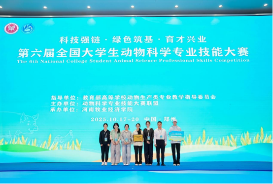 10月17日至19日,2025年第六届全国大学生动物科学专业技能大赛决赛在河南郑州举行 国产精品国产三级国产普通话,我校参赛队荣获团体二等奖。