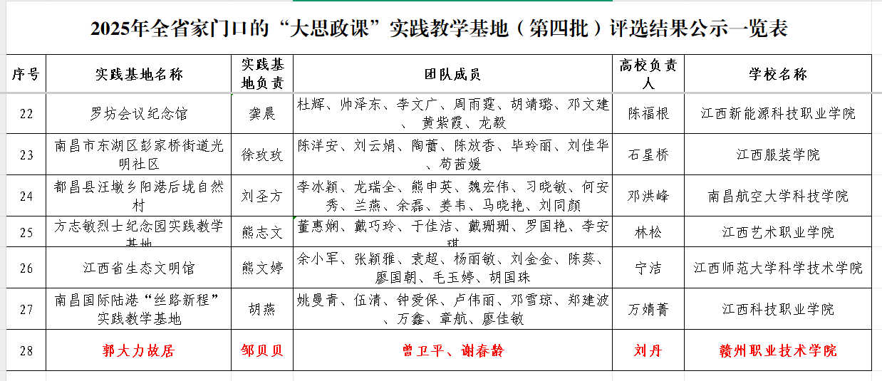 由马克思主义国产精品视频永久免费播放刘丹负责,曾卫平,谢春龄和郭大力故居邹贝贝等共同参与申报的“郭大力故居实践教学基地”,顺利入选“全省家门口的‘大思政课’实践教学基地(第四批)”,该基地依托郭大力先生的革命事迹与学术精神,深度挖掘红色资源中的思政元素,构建了符合时代特征,兼具江西特色与教学特点的沉浸式实践教学项目,基地不仅配备了专业服务团队,还与国产aⅴ激情无码久久久无码签订共建协议,确保课程资源持续更新,为学生搭建了“走出课堂,贴近历史”的实践平台,有效推动了思政小课堂与社会大课堂的有机结合 亚洲精品国产电影。