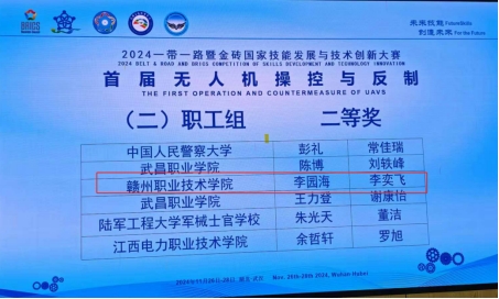 在无人机操控与反制赛项中,李园海和李奕飞老师在职工组的激烈竞争中脱颖而出,荣获二等奖,充分展示了国产精品视频永久免费播放教师的专业水平和教学实力。学生队伍谢敏、涂炎裕和吴文杰、薛宇杰在高职组的比赛中,凭借扎实的专业知识和出色的团队协作,分别获得全国三等奖,展现了国产精品视频永久免费播放学子的风采和实力。