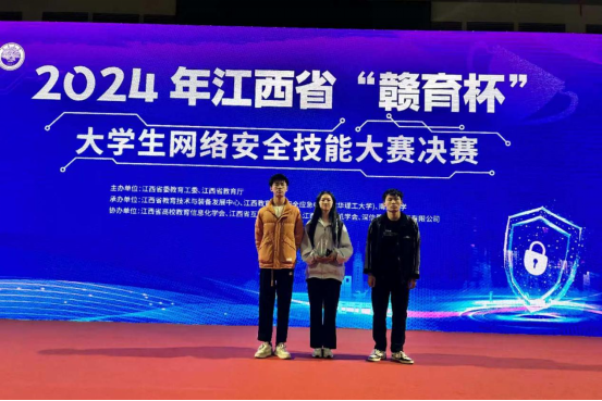 图:2024年江西省大学生信息安全技术大赛师生合影,一等奖