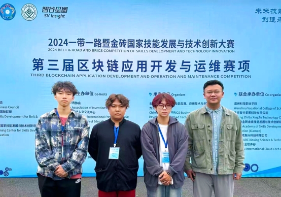 图:2024“一带一路”暨金砖技能大赛区块链赛项师生合影,国赛三等奖