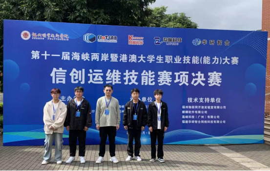 图:2024十一届海峡两岸暨港澳大学生技能大赛信创运维赛项师生合影,2个二等奖、1个三等奖