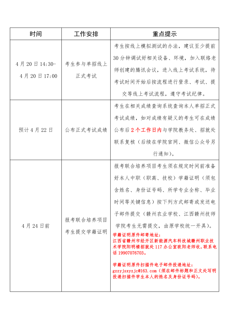 在4月24日前,报考联合培养项目考生须在规定时间前准备好本人中职(职高、技校)学籍证明(须包含姓名、身份证号码、所学专业全称、毕业时间等关键信息)按下列方式邮寄或发送电子邮件提交(赣州农业国产aⅴ激情无码久久久无码、江西赣州技师国产精品视频永久免费播放考生无需提交,由原国产aⅴ激情无码久久久无码统一开具)。