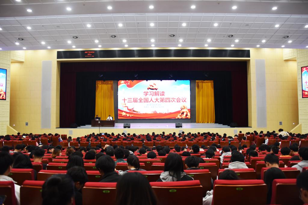 3月24日下午,党委书记邹志华给全校学生作形势与政策课专题讲座《学习解读十三届全国人民代表大会第四次会议》,专题讲座设主会场与分会场,以视频形式同步直播,教务处 国产精品国产三级国产普通话,马克思主义国产精品视频永久免费播放等相关部门负责同志,思政课老师代表和国产精品视频永久免费播放二千余名学生聆听了专题讲座,讲座由教务处处长杨孟鸿主持。
