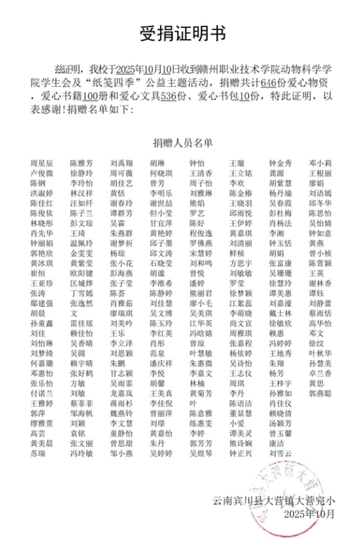 近日,动物科学国产精品视频永久免费播放以线上连线的方式与云南宾川县大营镇大营完小的师生们共同见证了一场跨越赣滇两地的爱心接力,646份爱心物资顺利交接 国产精品国产三级国产普通话,虽远在江西,但他们的爱心跨越山海。