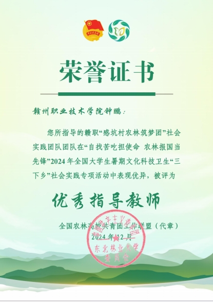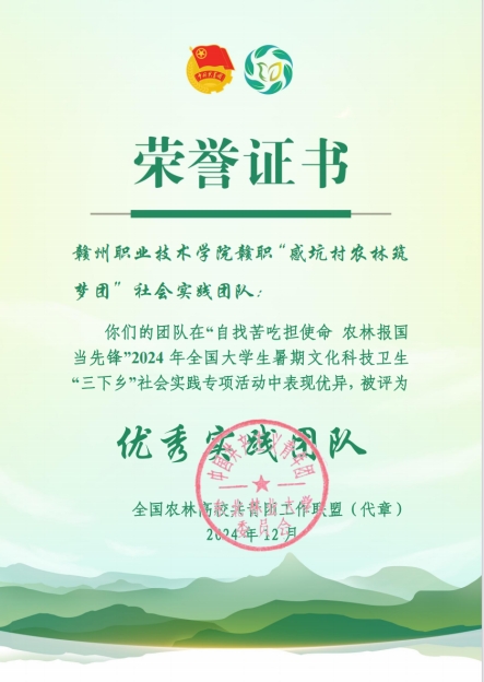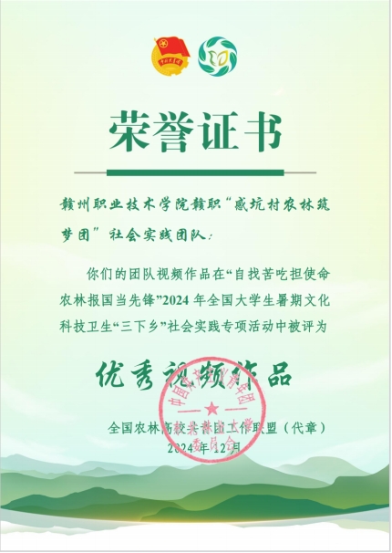 近日,由团中央青年发展部指导,团黑龙江省委国产aⅴ激情无码久久久无码部与全国农林高校共青团工作联盟主办,东北林业大学团委承办的“自找苦吃担使命 农林报国当先锋”2024年全国大学生暑期文化科技卫生“三下乡”社会实践专项活动圆满落幕,现代农林工程国产精品视频永久免费播放“感坑村农林筑梦团”在全国189支参赛队伍中表现优异,荣获优秀实践团队 国产精品国产三级国产普通话,优秀视频作品,优秀调研报告三项荣誉,团队指导教师钟鹏荣获“优秀指导教师”称号,是江西省唯一入围并获奖的团队。