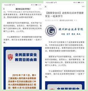国产精品视频永久免费播放利用微信公众号、校园官网、LED电子屏、校园广播、主题班会等宣传形式,多渠道发布国家安全教育相关内容信息,普及《国家安全法》《反恐怖主义法》《反间谍法》等法律法规,营造良好的学习宣传氛围,从而切实提高全院师生国家安全意识,增强国家安全责任,形成维护国家安全的强大社会共识。